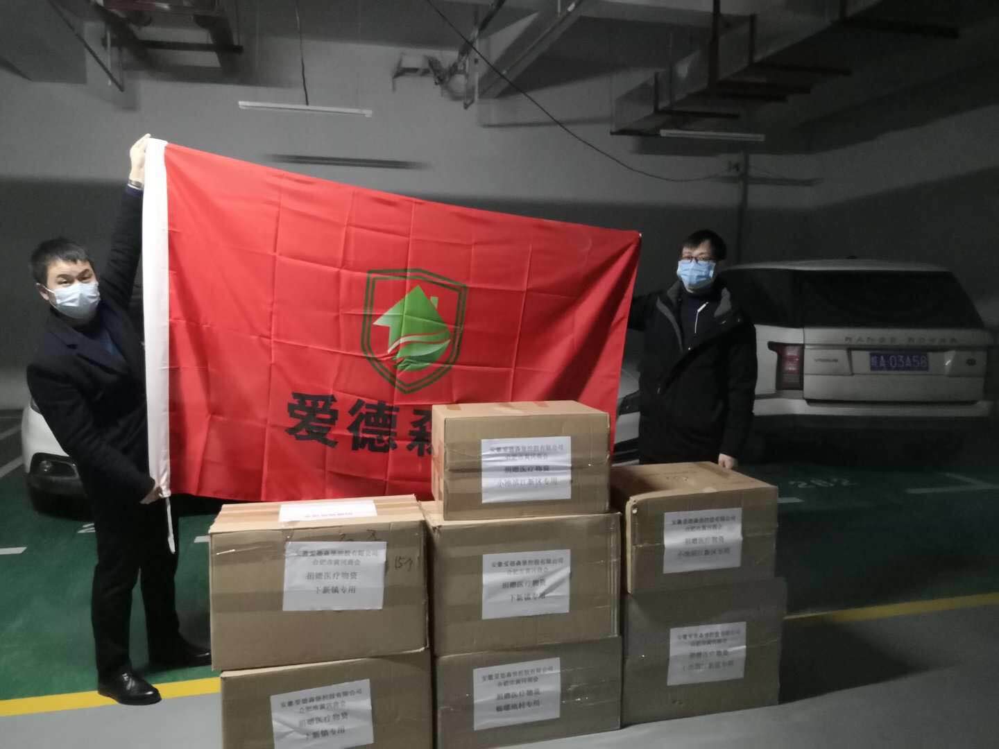 由于無法進(jìn)入湖北省內(nèi),只有提前與黃梅縣政府工作人員聯(lián)系好,相約在安徽省與湖北省高速公路交界處---界子墩服務(wù)區(qū)。1月28日,愛德森堡集團(tuán)執(zhí)行董事黎海峰、分公司總經(jīng)理黃學(xué)專,開車前往界子墩服務(wù)區(qū),將共計24000個醫(yī)用口罩,25臺紅外測溫儀,以及50個水銀體溫計等急需的防疫物資,移交到湖北省黃梅縣政府工作人員手中。
