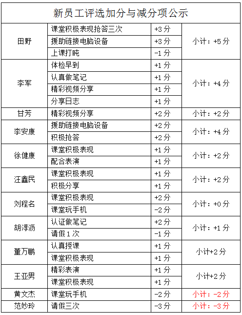 關(guān)于新員工特訓營成績公示的通知