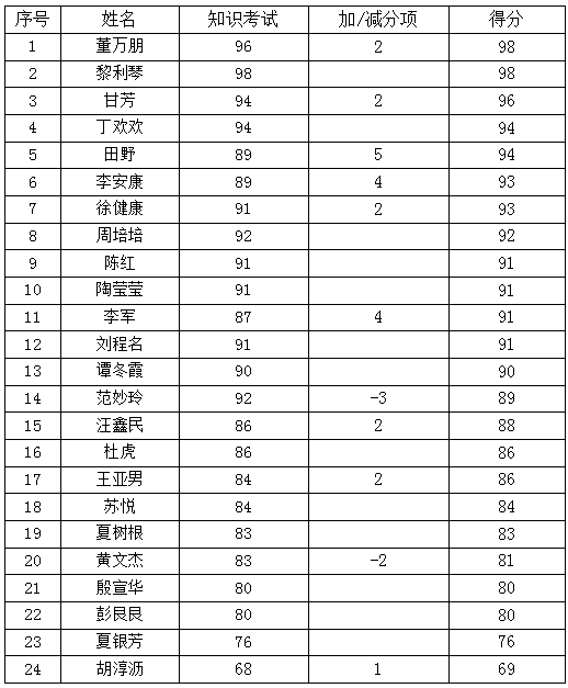 一、現(xiàn)場互動加減分排名表: