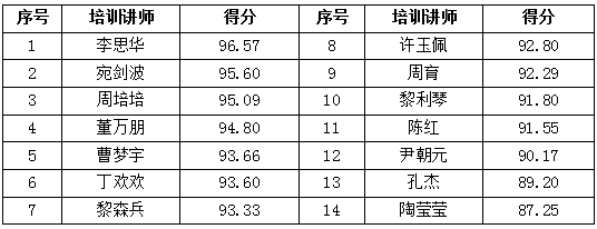 四、金銀銅牌內(nèi)訓講師匿名評分榜: