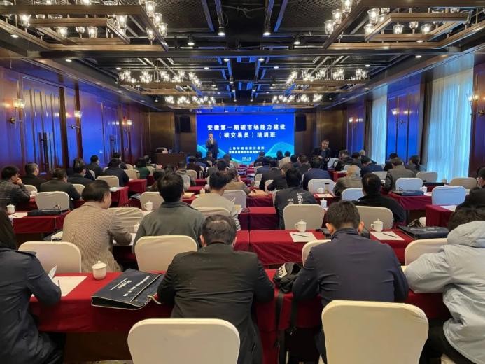 2022年3月9-11日,由晟能碳投主辦的安徽第一期碳交易能力建設(碳交易員)培訓在合肥成功舉辦,會場坐滿了為期三天課程學習的學員。