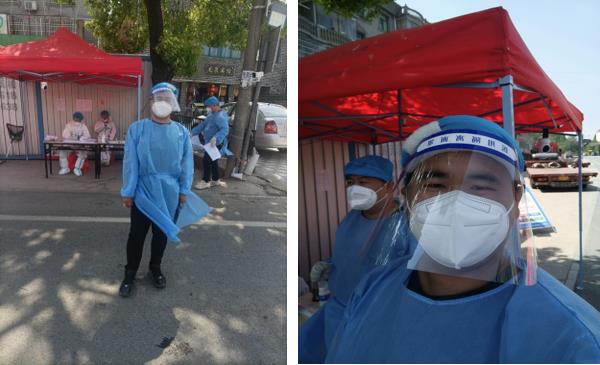 我司志愿者分成兩批,首批志愿者為4月初參加了防疫行動,值班人員為武方;第二批志愿者的時間從4月18日至30日。分為3個班次,7:00-15:00,15:00-23:00,23:00-7:00,每個班次8小時,人員之間輪流值班!緟⒓又驹富顒拥挠型豕鹈贰⑽浞、汪偉為】