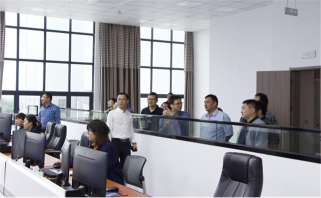 在黎總的帶領(lǐng)下,郭局長(zhǎng)、孫書(shū)記及各鎮(zhèn)園區(qū)分管經(jīng)濟(jì)領(lǐng)導(dǎo)一行對(duì)愛(ài)德森堡新材料有限公司的多功能智慧指揮中心、物流調(diào)度中心和三樓中央控制室項(xiàng)目現(xiàn)場(chǎng)進(jìn)行了參觀。