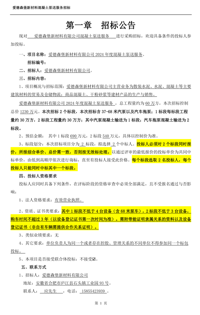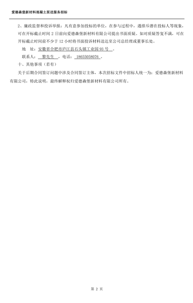 > 愛德森堡新材料混凝土泵送服務(wù)招標(biāo)